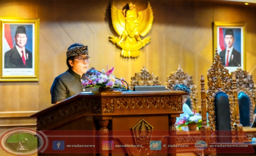M-RADARNEWS.COM, BALI – Bupati Badung I Nyoman Giri Prasta menyampaikan jawaban pemerintah terhadap pandangan umum (PU) Fraksi-Fraksi DPRD Badung terkait pembahasan Raperda RTRW Kabupaten Badung tahun 2025-2045, pada Rapat Paripurna DPRD Badung di ruang Rapat Utama Gosana, Kantor DPRD, Puspem Badung, pada Kamis (13/02/2025).