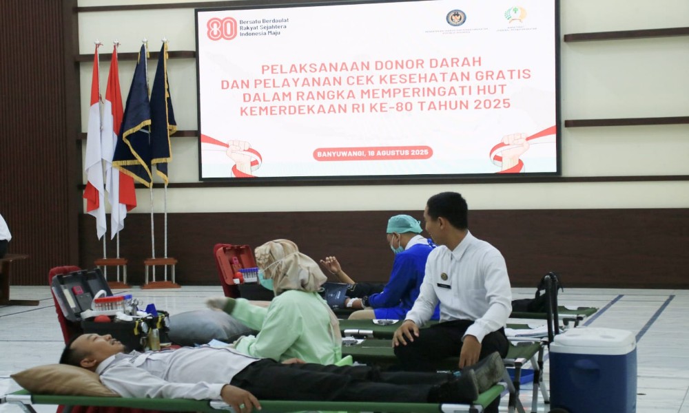 Kegiatan tersebut berlangsung melalui kerjasama dengan Palang Merah Indonesia (PMI) Kabupaten Banyuwangi. Para pegawai terlihat antusias mengikuti kegiatan tersebut.