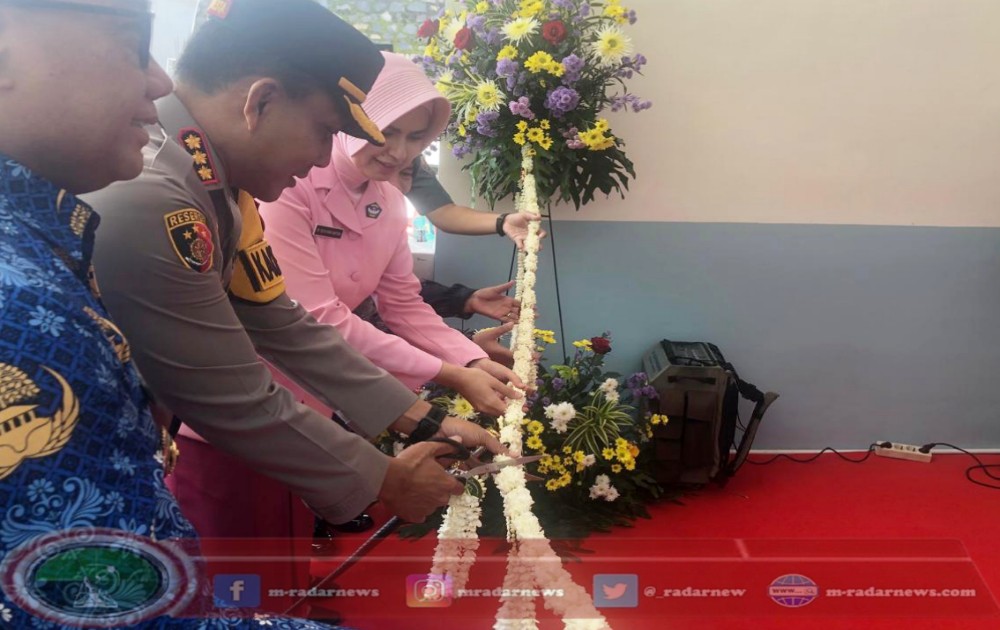 Kapolresta Banyuwangi Kombes Pol Rama Samtama Putra,S.I.K., M.Si., M.H., didampingi Ibu Ketua Bhayangkari Cabang Kota Banyuwangi Ny. Nova Rama Samtama Putra melakukan prosesi pemotongan pita di lokasi SPPG.