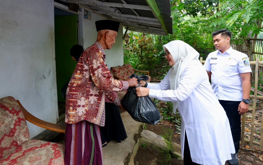 Bupati Banyuwangi, Ipuk Fiestiandani memimpin langsung penyaluran bantuan pada Rabu (28/1/2026). Salah satu penerima bantuan adalah Bermawi (81), warga Lingkungan Wonosari, Kelurahan Sobo.