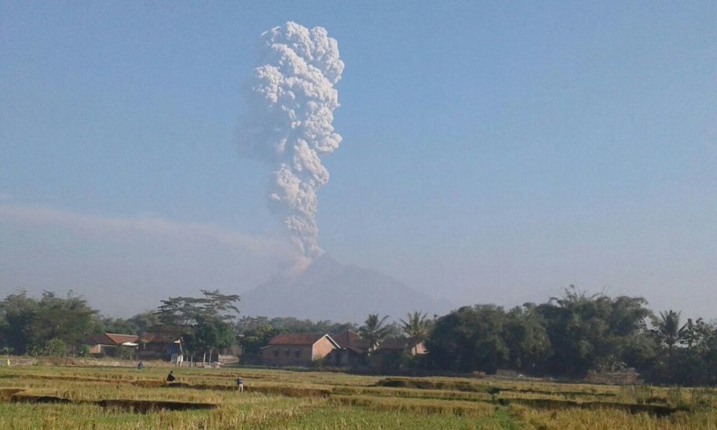 NASIONAL, (M-RADARNEWS),- Gunung Merapi yang terletak di Kabupaten Klaten, Megelang, Boyolali dan Sleman meletus freatik pada Jumat (11/5) sekitar pukul 07.32 WIB. Letusan disertai suara gemuruh dengan tekanan sedang hingga kuat dan tinggi kolom 5.500 meter dari puncak kawah. Letusan melontarkan abu vulkanik, pasir dan material piroklatik.