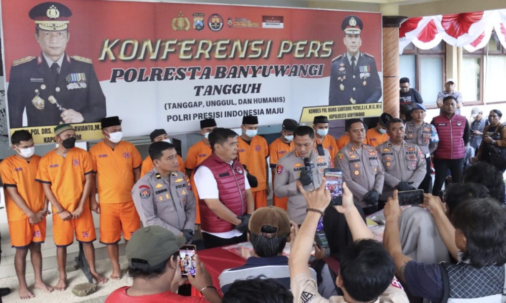 Kapolresta Banyuwangi, Kombes Pol Rama Samtama Putra, S.I.K., M.Si., M.H., dalam keterangan resminya menyampaikan bahwa dari seluruh kasus tersebut, terdapat dua tersangka diamankan dengan barang bukti terbanyak.