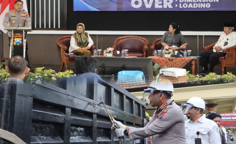 Kegiatan ditutup dengan aksi simbolis pemotongan bak truk yang dimensinya melanggar ketentuan, dilakukan langsung oleh Kapolresta Banyuwangi dan disaksikan oleh seluruh peserta FGD.