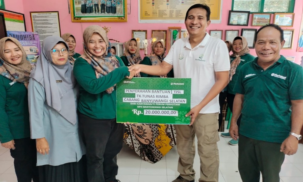 M-RADARNEWS.COM, JATIM – Perum Perhutani Pusat melalui Perhutani Kesatuan Pemangkuan Hutan (KPH) Banyuwangi Selatan kembali menyalurkan dana bantuan Tanggung Jawab Sosial dan Lingkungan (TJSL) kepada lembaga pendidikan Taman Kanak-kanak (TK) Tunas Rimba Benculuk sebesar Rp 20 Juta, Sabtu (22/11/2025).