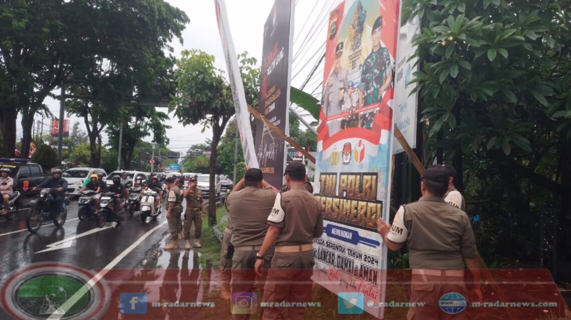 Dengan menggunakan dua unit mobil patroli, tim menurunkan puluhan baliho, spanduk, banner, dan pamflet yang melanggar ketentuan. Alat peraga yang diturunkan kemudian ditempatkan rapi di sekitar lokasi pemasangan.