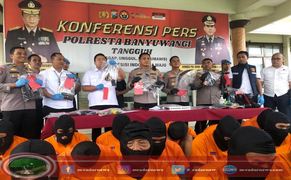 M-RADARNEWS.COM, JATIM – Jajaran Polresta Banyuwangi merilis hasil Operasi Pekat Semeru II 2025, bertempat di Mapolresta Banyuwangi, Senin (19/05/2025). Sebanyak 25 laporan polisi (LP) berhasil diungkap, dengan total 37 tersangka yang telah diamankan termasuk kasus perampasan bermodus polisi gadungan.