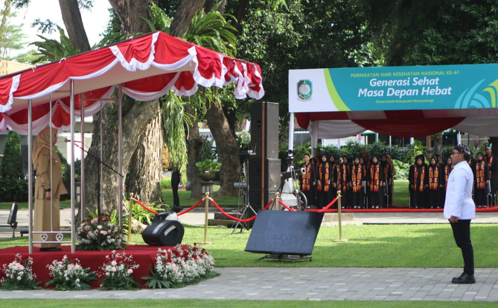 M-RADARNEWS.COM, JATIM – Pemerintah Kabupaten (Pemkab) Banyuwangi, menggelar upacara peringatan Hari Kesehatan Nasional (HKN) ke-61 di halaman Kantor Bupati Banyuwangi, pada Senin (24/11/2025). Upacara dipimpin langsung oleh Bupati Banyuwangi, Ipuk Fiestiandani selaku inspektur upacara.