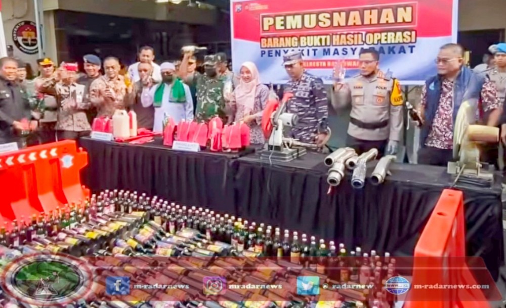M-RADARNEWS.COM, JATIM – Polresta Banyuwangi mengambil langkah tegas dengan memusnahkan barang bukti hasil operasi sebanyak 6.000 botol minuman keras (miras) berbagai merek dan jenis serta 107 knalpot brong, di halaman Mapolresta Banyuwangi, pada Jumat (20/12/2024).