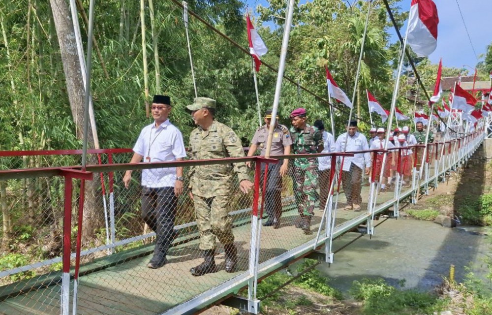 “Jembatan ini dibangun 24 jam setiap hari dan selesai hanya dalam 41 hari melalui semangat gotong royong antara TNI dan masyarakat. Ini bukti negara hadir untuk rakyat, terutama mempermudah akses anak-anak sekolah dan para santri yang sebelumnya harus memutar jauh atau menyeberangi sungai dengan risiko tinggi,” ungkapnya.