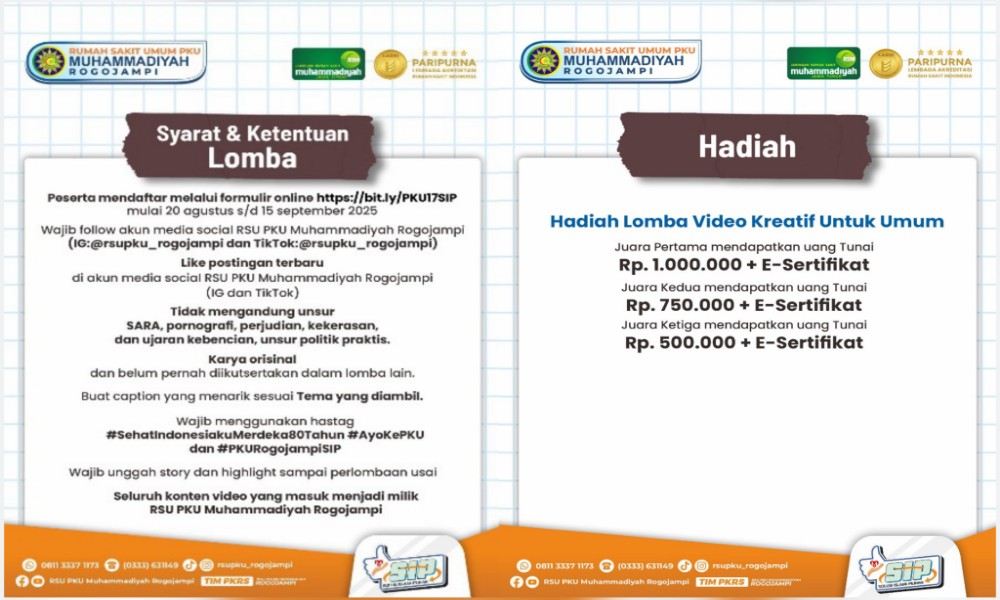 Syarat dan Ketentuan serta Hadiah Lomba Video Kreatif PKU Muhammadiyah Rogojampi