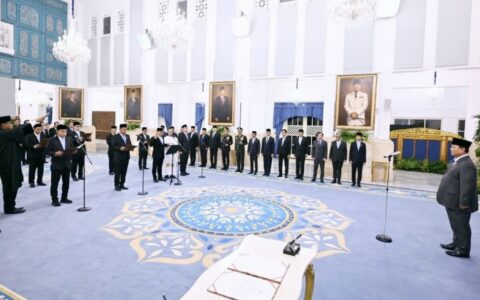 Turut mendampingi Presiden Prabowo dalam menyampaikan keterangan tersebut, di antaranya Menteri Sekretaris Negara Prasetyo Hadi, Menteri Keuangan Sri Mulyani, Menteri Pendayagunaan Aparatur Negara dan Reformasi Birokrasi (Menpan RB) Rini Widyantini, serta Sekretaris Kabinet Teddy Indra Wijaya.