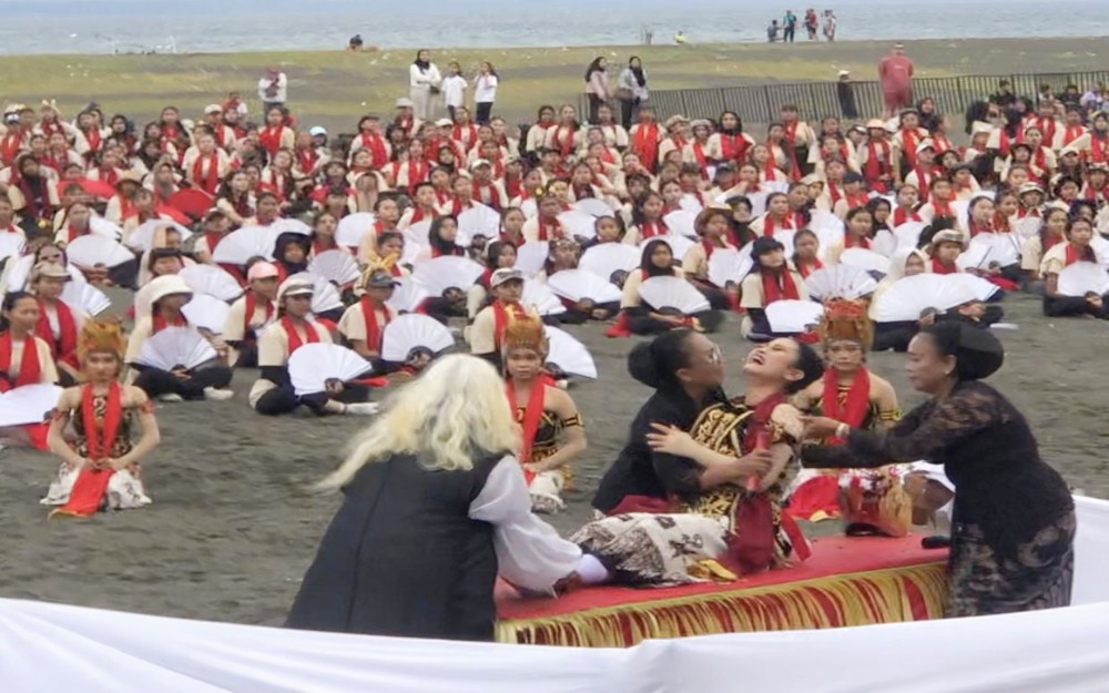 M-RADARNEWS.COM, JATIM – Prosesi sakral Meras Gandrung menyelimuti Pantai Marina Boom, Banyuwangi, pada Jumat (24/10/2025). Sebanyak 1.400 penari mengikuti ritual yang dipimpin gandrung senior legendaris Banyuwangi, sebagai tahapan wajib sehari sebelum pementasan kolosal Tari Gandrung Sewu 2025, yang akan digelar, Sabtu, 25 Oktober 2025.