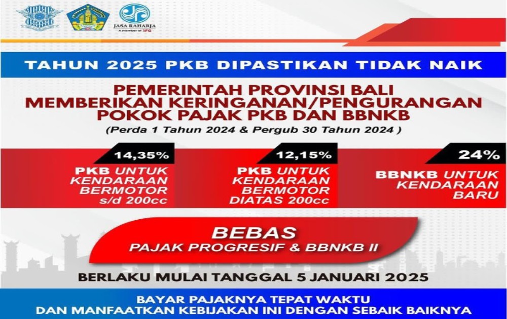 “Pemberian diskon PKB dan BBNKB ini mulai diberlakukan pada tanggal 5 Januari 2025. Kebijakan ini dikeluarkan guna meringankan dan mengurangi beban masyarakat,” kata Budiasa.