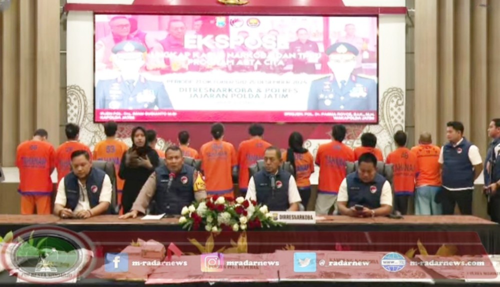 M-RADARNEWS.COM, JATIM – Direktorat Reserse Narkoba (Ditresnarkoba) Polda Jawa Timur (Jatim) bersama jajaran Polres berhasil mengungkap 819 kasus narkoba sepanjang periode 21 Oktober hingga 25 Desember 2024.