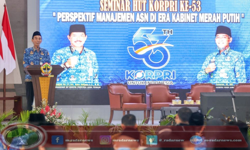 M-RADARNEWS.COM, JATENG – Aparatur Sipil Negara (ASN) di lingkungan Pemerintah Provinsi Jawa Tengah (Pemprov Jateng) siap tancap gas untuk menyukseskan program pembangunan pada Kabinet Merah Putih (KMP). Hal itu mengemuka dalam seminar dalam rangka HUT ke-53 Korpri 2024, bertema Perspektif Manajemen ASN di Era Kabinet Merah Putih, di Gedung Wisma Perdamaian Semarang, Kamis (21/11/2024).