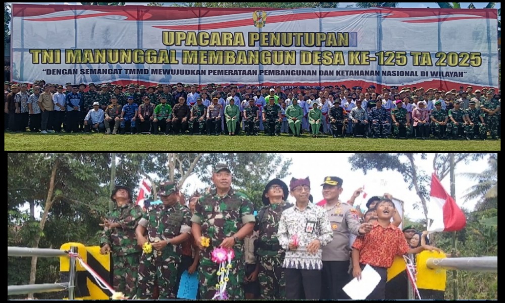M-RADARNEWS.COM, JATIM – Program TNI Manunggal Membangun Desa (TMMD) ke-125 resmi ditutup, pada Kamis (21/08/2025). Upacara penutupan digelar di Lapangan Desa Seneporejo, Kecamatan Siliragung, Banyuwangi, dengan mengusung tema “Dengan Semangat TMMD Mewujudkan Pemerataan Pembangunan dan Ketahanan Nasional di Wilayah”.