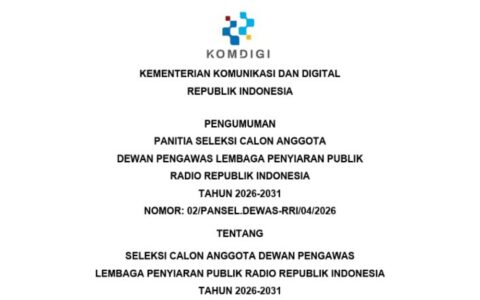 M-RADARNEWS.COM, JAKARTA – Kementerian Komunikasi dan Digital Republik Indonesia (Kemkomdigi RI), resmi membuka seleksi Calon Anggota Dewan Pengawas Lembaga Penyiaran Publik Radio Republik Indonesia (LPP RRI) untuk masa jabatan 2026-2031. Pendaftaran dibuka mulai 22 April hingga 5 Mei 2026.